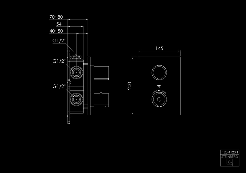 STEINBERG SERIA 120 Bateria prysznicowa termostatyczna 3-drożna podtynkowa, element zewnętrzny Chrom 120.4123.1 / 12041231