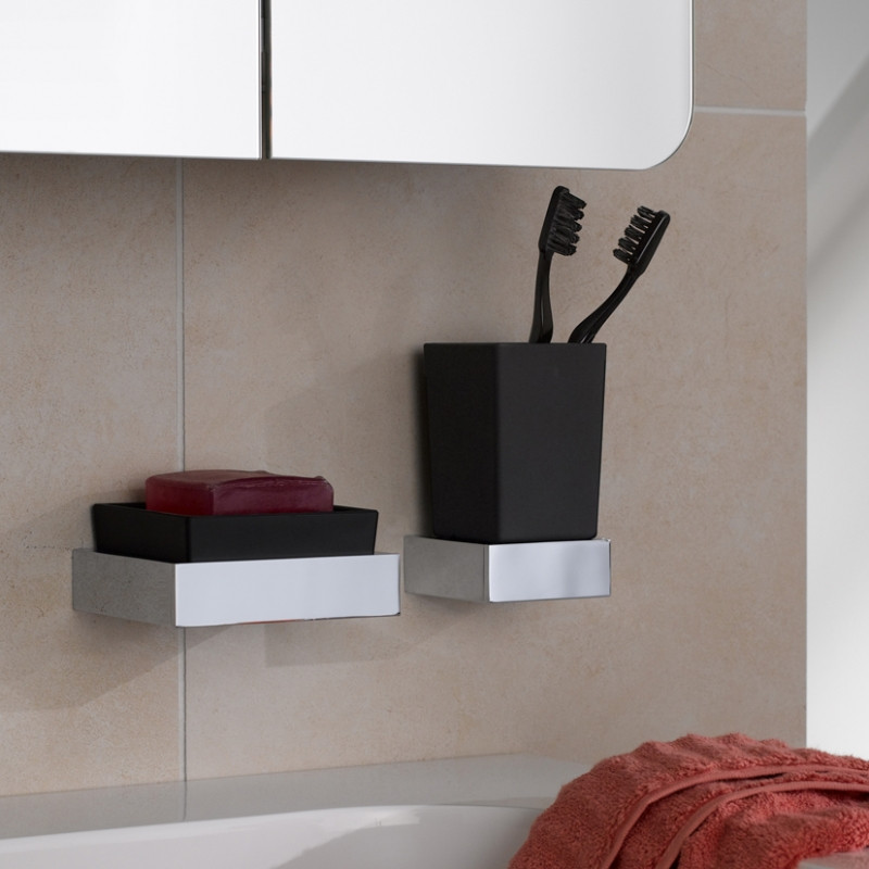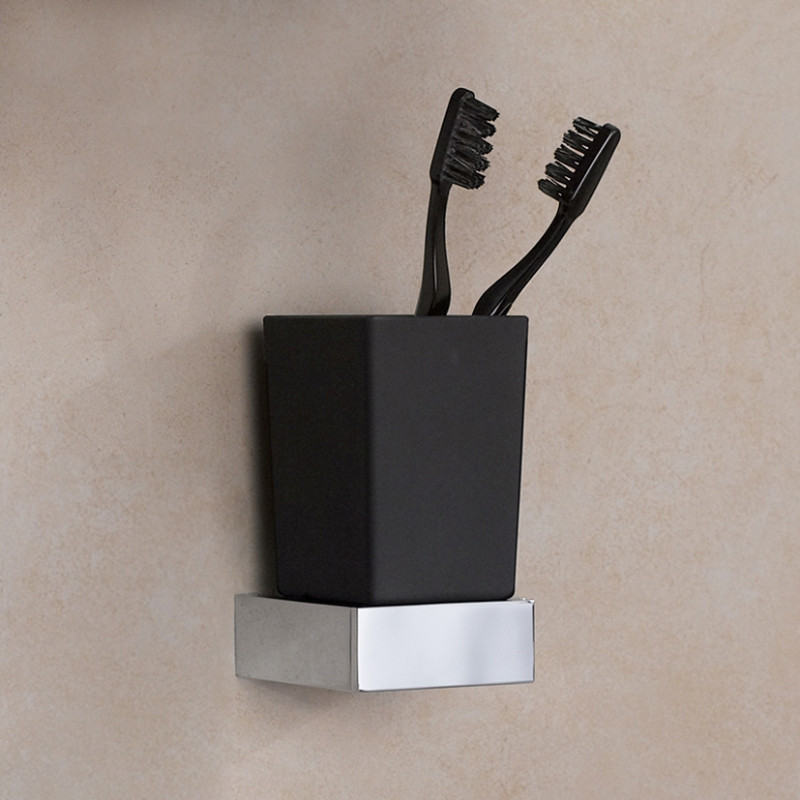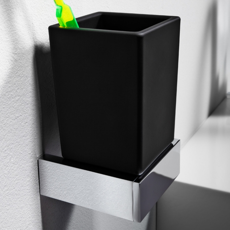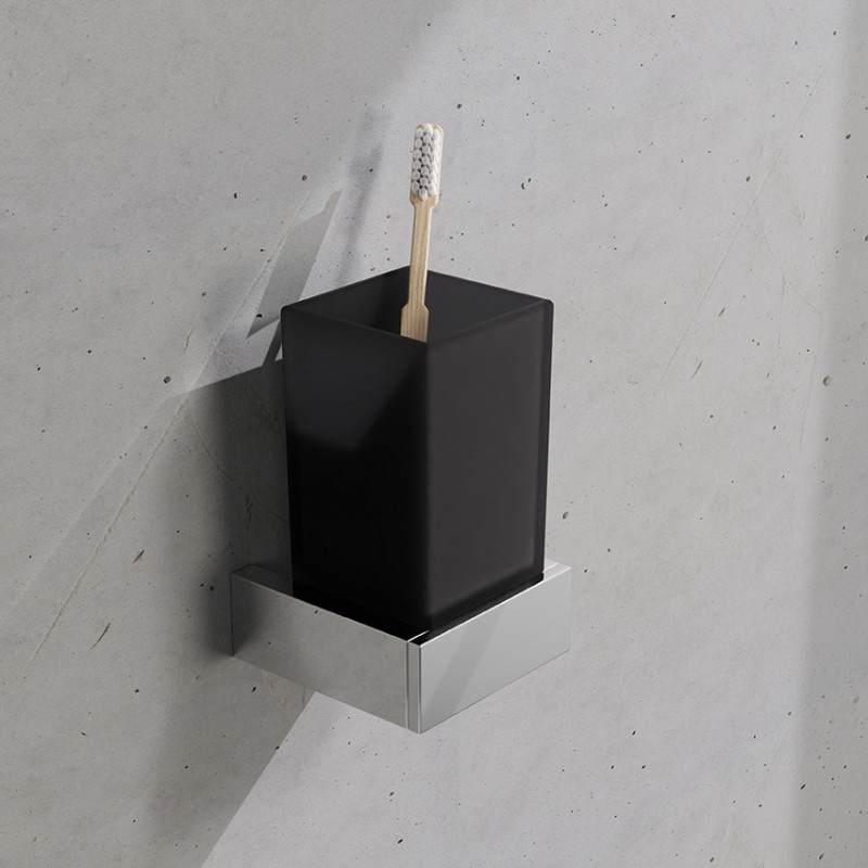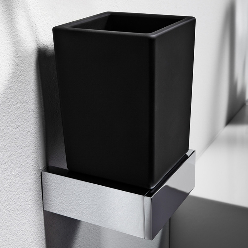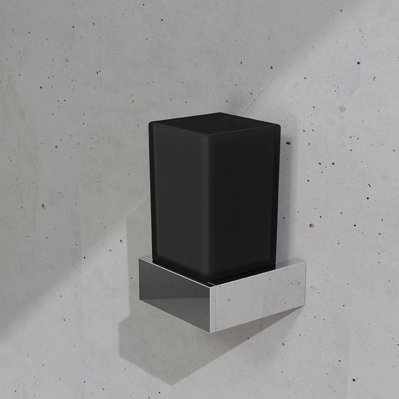 STEINBERG SERIA 460 Kubek szklany z uchwytem ściennym Chrom/Czarny mat 460.2002 / 4602002