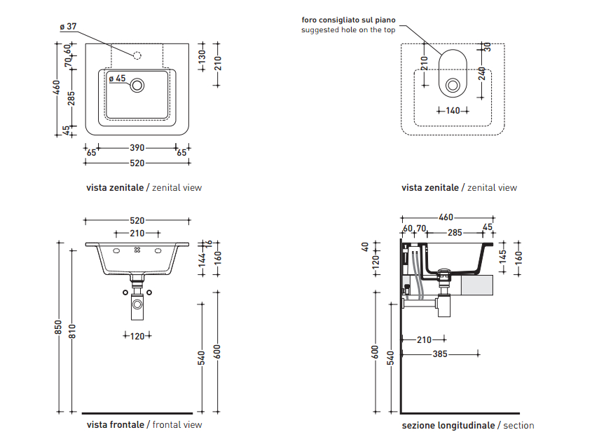 Flaminia Volo Umywalka ścienna 52x46 cm Biały VL52L