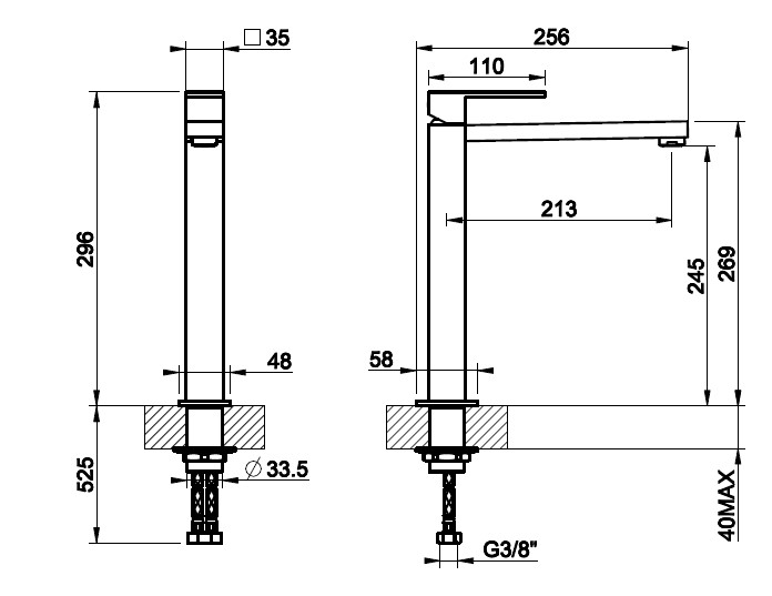 Gessi Rettangolo Bateria umywalkowa jednootworowa wysoka bez korka chrom 11924.031