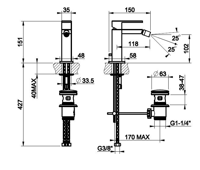 Gessi Rettangolo Bateria bidetowa jednootworowa z korkiem chrom 20007.031