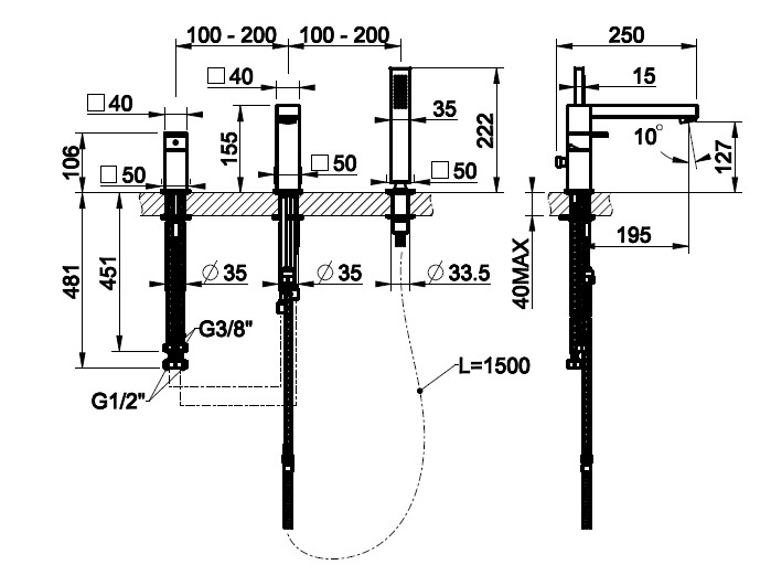 Gessi Rettangolo Bateria wannowa 3-otworowa chrom 20037.031