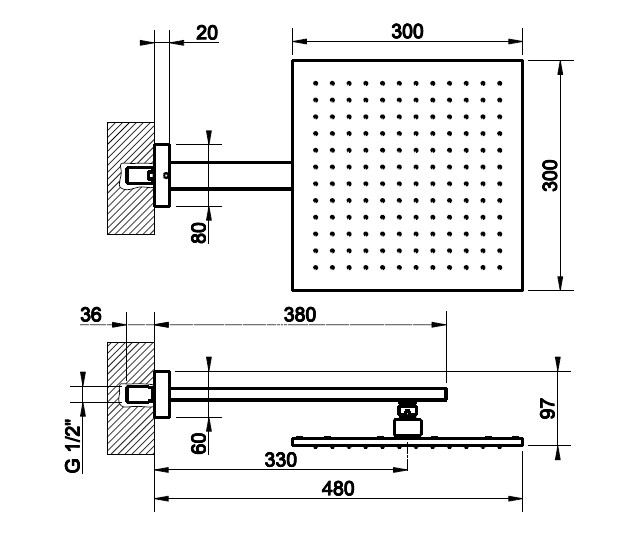 Gessi Rettangolo Deszczownica z ramieniem ściennym chrom 15185.031