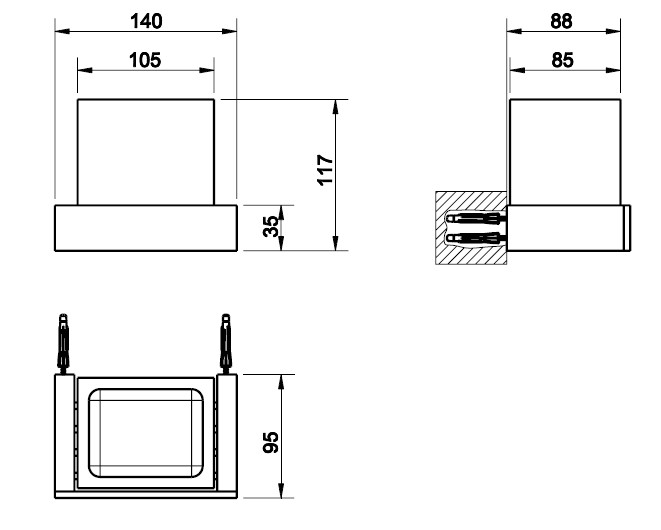 Gessi Rettangolo Kubek (czarny) ścienny chrom 20808.031