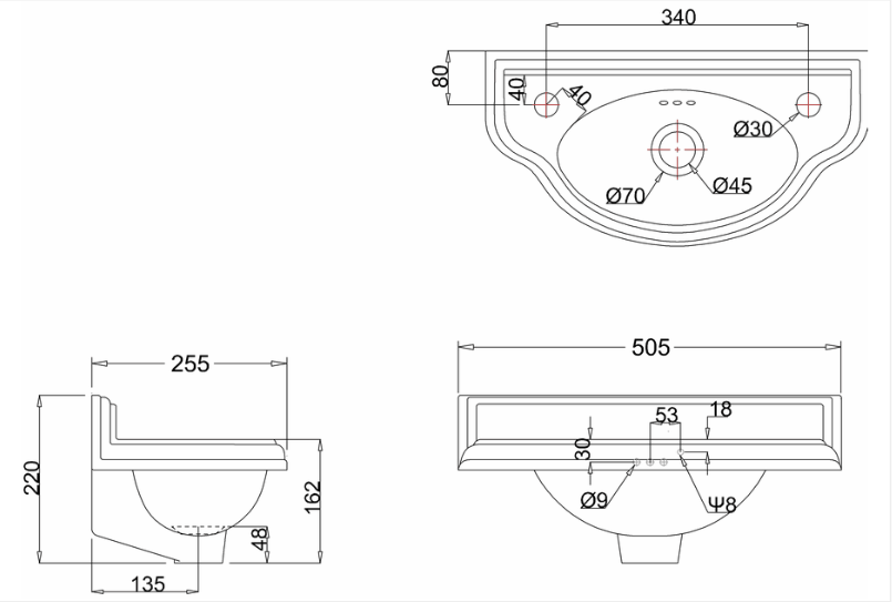 Burlington Curved Cloakroom Umywalka 50,5x25,5 biała P13