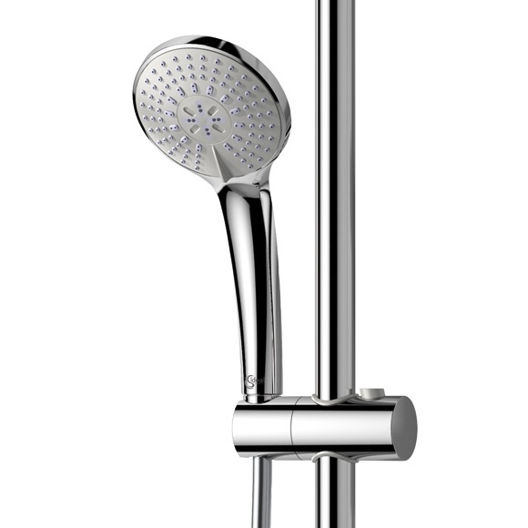 • Trzyfunkcyjna słuchawka prysznicowa średnicy 100 mm z ogranicznikiem