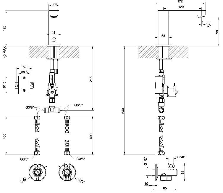 Gessi Rettangolo Bateria umywalkowa sensoryczna chrom 30501.031