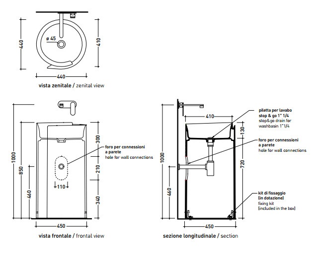 Flaminia Monoroll Umywalka przyścienna Ø 44 cm Biały MR44P