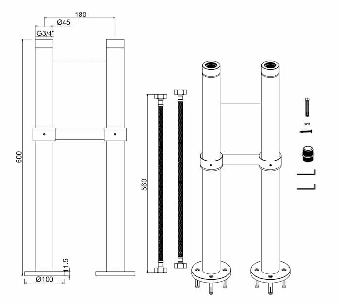Cena obejmuje tylko Rury stojące i nie zawiera żadnych innych elementów pokazanych na obrazku