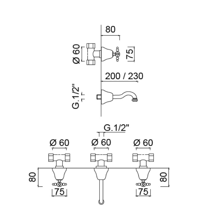 Giulini Giovanni Parigi bateria umywalkowa 3-otworowa podtynkowa 7322