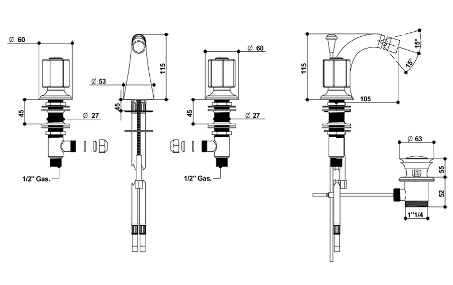 Bongio Fleur Noir bateria bidetowa 3-otworowa 12503