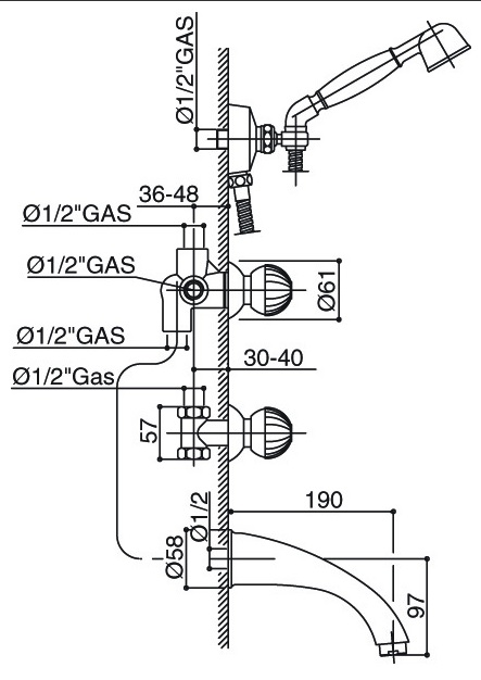 Bongio Radiant bateria wannowa podtynkowa z prysznicem