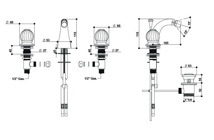 Bongio Rivolì bateria bidetowa 3-otworowa 05503