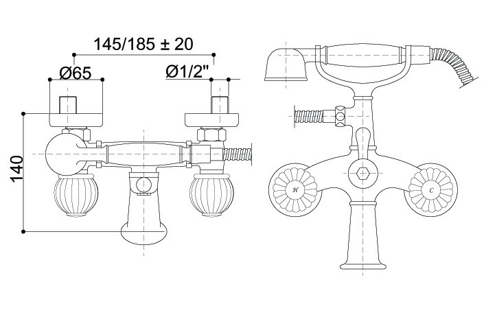 Bongio Rivolì bateria wannowa ścienna z prysznicem 05526