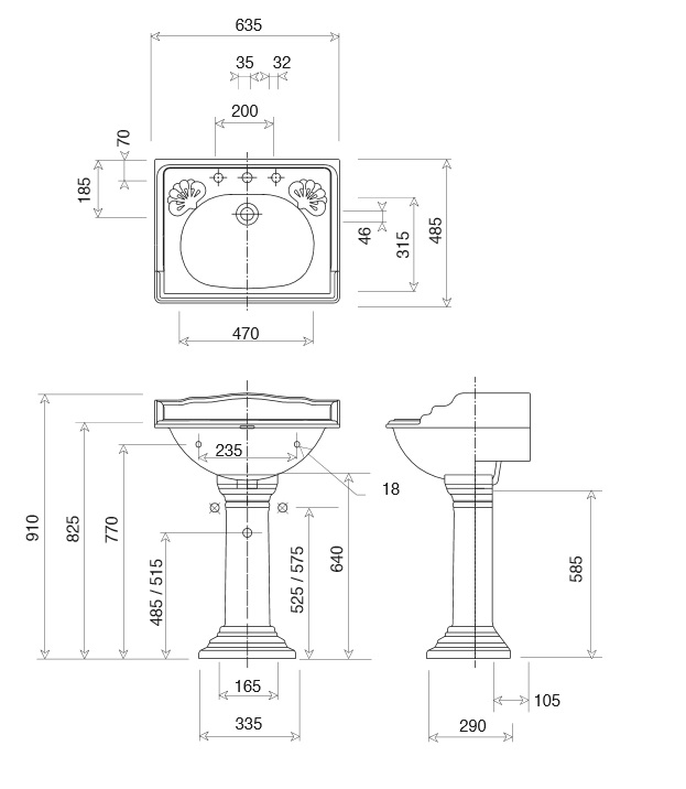 Konsola pod umywalkę (chrom) 9062, (incalux) 9063, (złoto) 9063-ORO