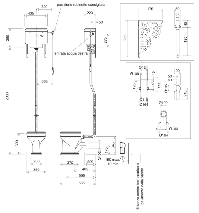 Gentry Home Victorian/Belgravia/Balasani/Claremont Orurowanie do spłuczki wysokiej Chrom 2035