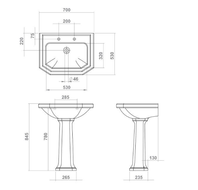 Możliwość zamówienia umywalki z dwoma lub trzema otworami (proszę o podanie w zamówieniu ile otworów na baterię ma posiadać umywalka)