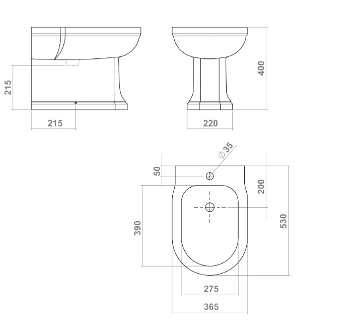 Gentry Home Claremont Bidet stojący z otworem na baterię Biały 2215