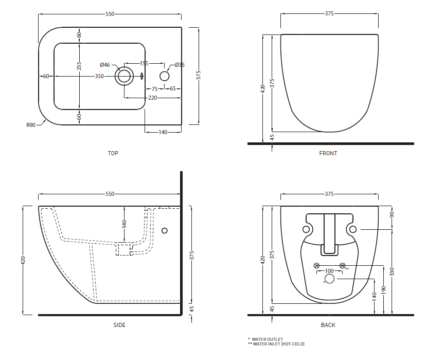 cena dotyczy bidetu z mocowaniami w kolorze białym