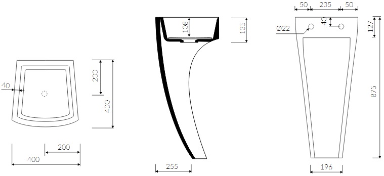 Marmorin Waver Umywalka stojąca-przyścienna 40x40x87,5 cm Biały P_S_099_01_0400