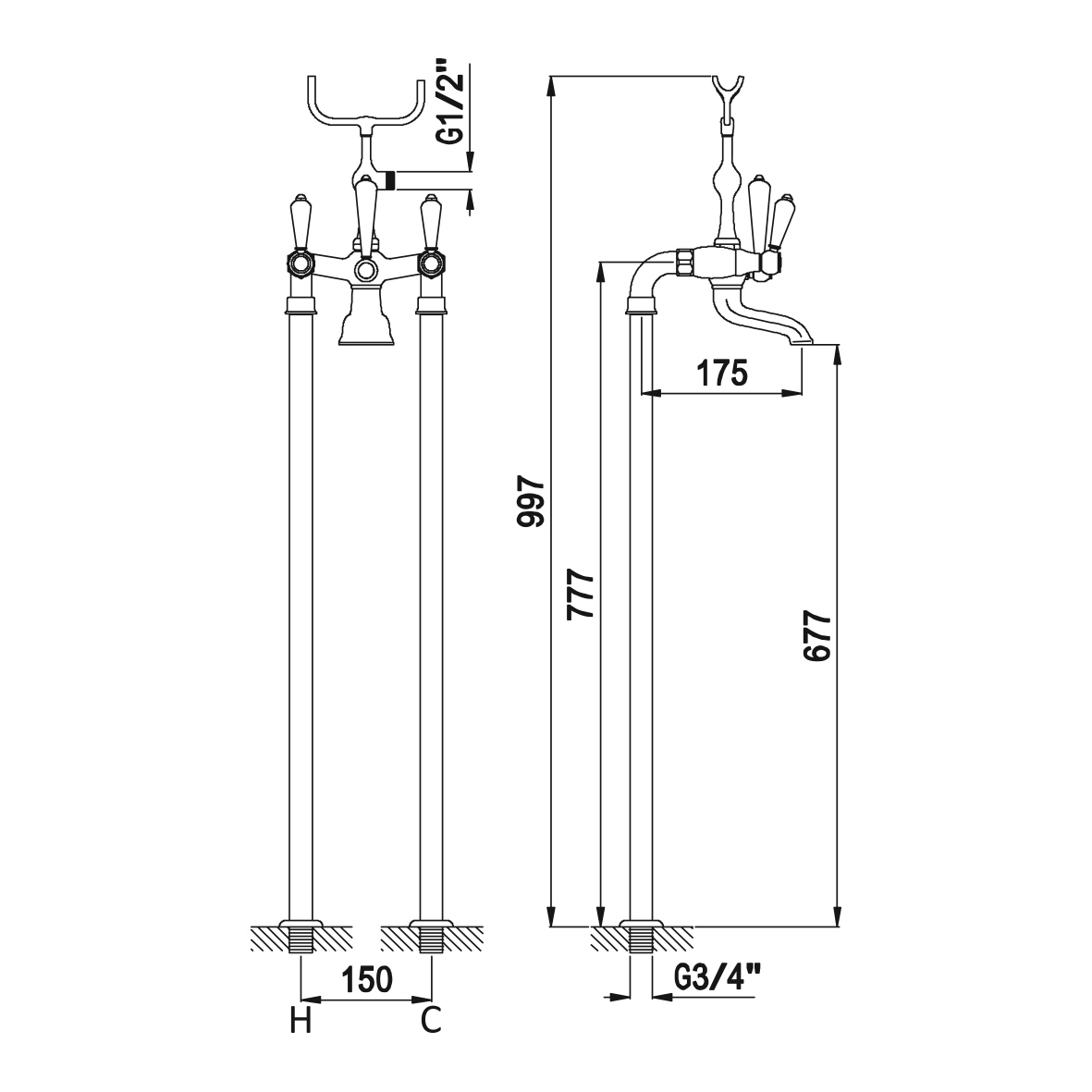Bruma Classico Bateria wannowa wolnostojąca chrom 11807001