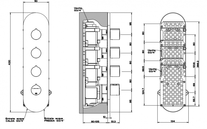 Gessi Tondo Bateria Wannowo-natryskowa termostatyczna podtynkowa Chrom 43066.031 / 43066031