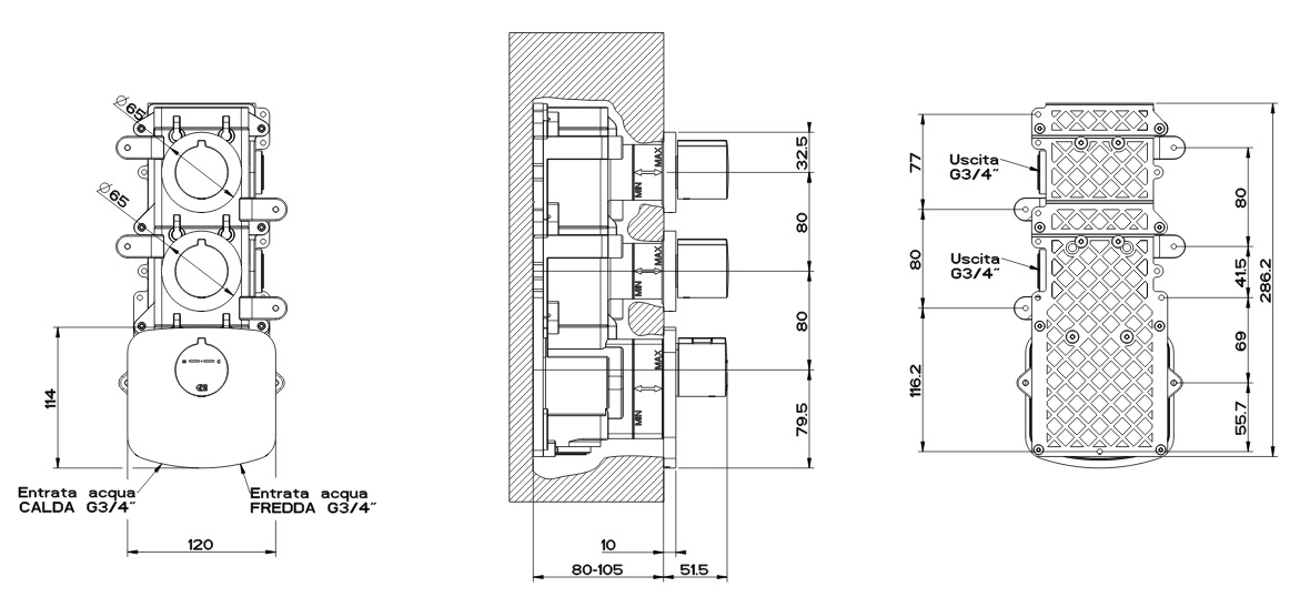 Gessi Tondo Bateria Wannowo-natryskowa termostatyczna podtynkowa Chrom 43234.031 / 43234031