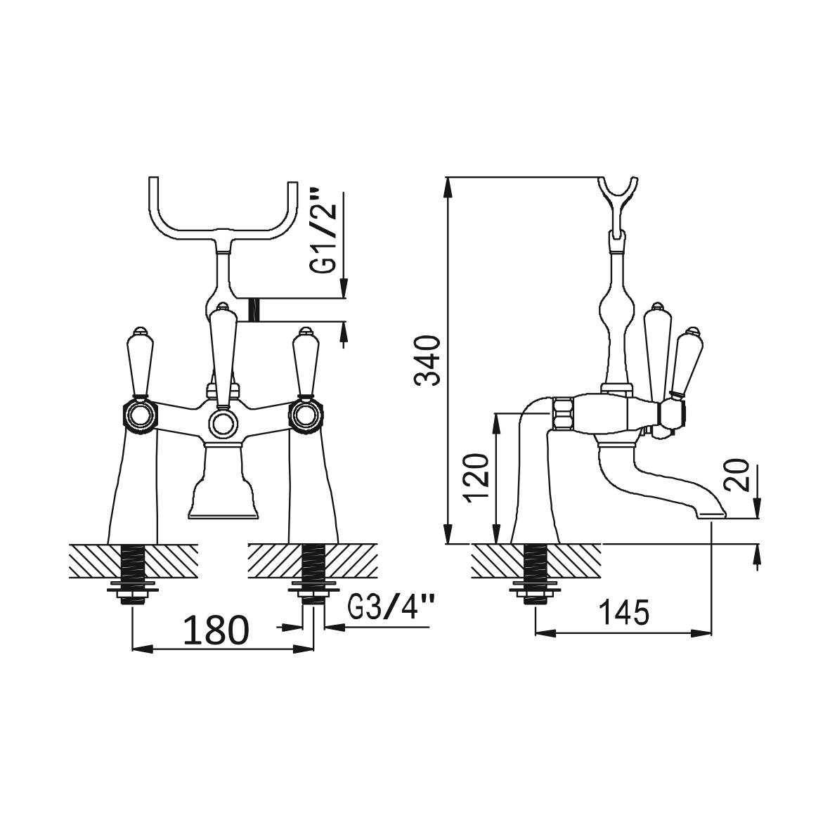 Bruma Classico Bateria wannowa na brzeg wanny Chrom 1187200CR