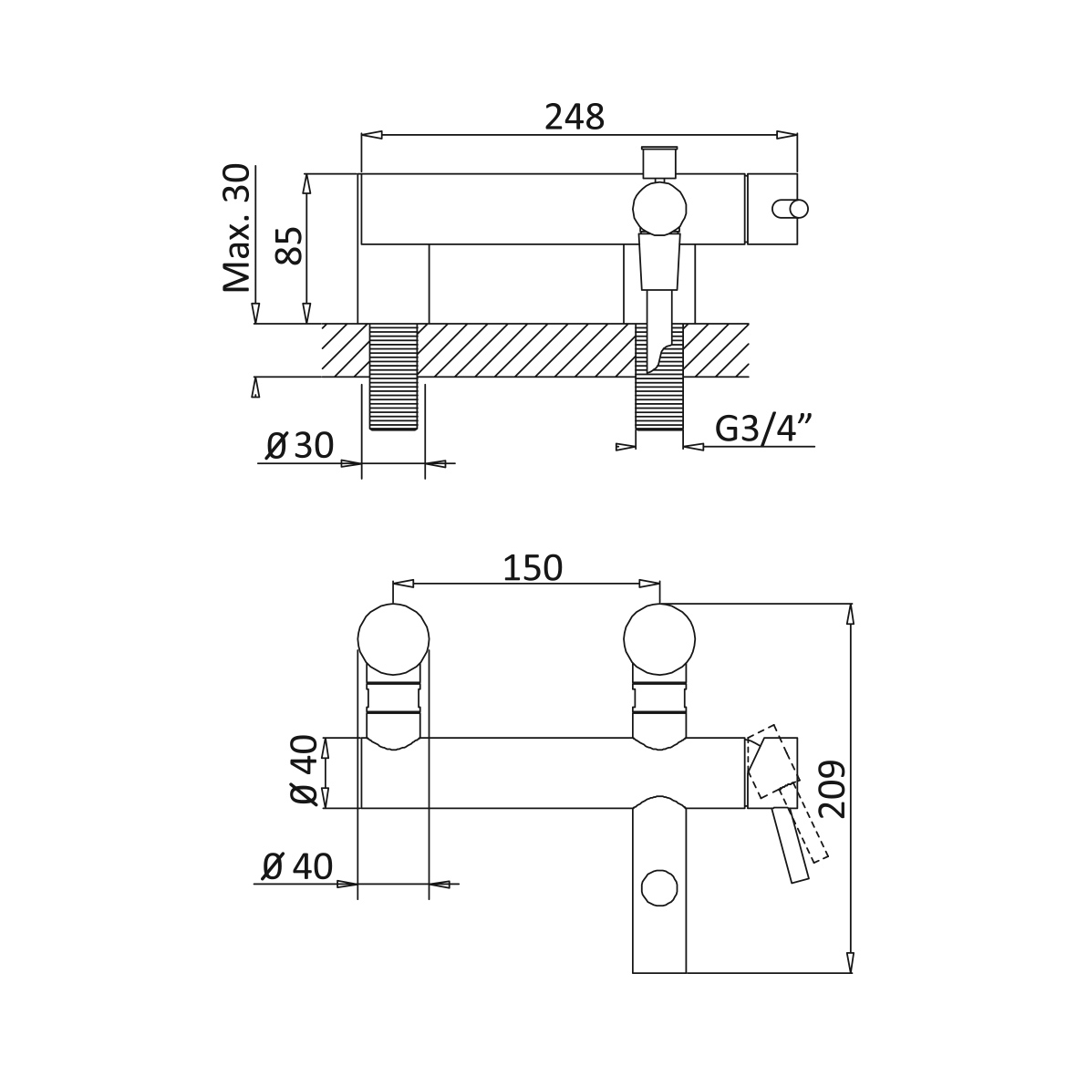 Bruma Lusitano Bateria wannowo-natryskowa na brzeg wanny chrom 1077201CR