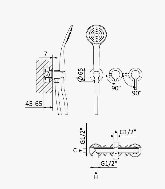 Bateria podtynkowa z elementem montażowym podtynkowym w komplecie.