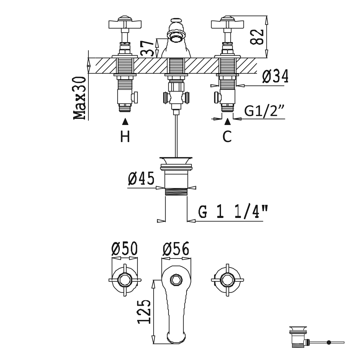 Bruma Imperial Bateria umywalkowa 3-otworowa z korkiem automatycznym Chrom 1172520CR