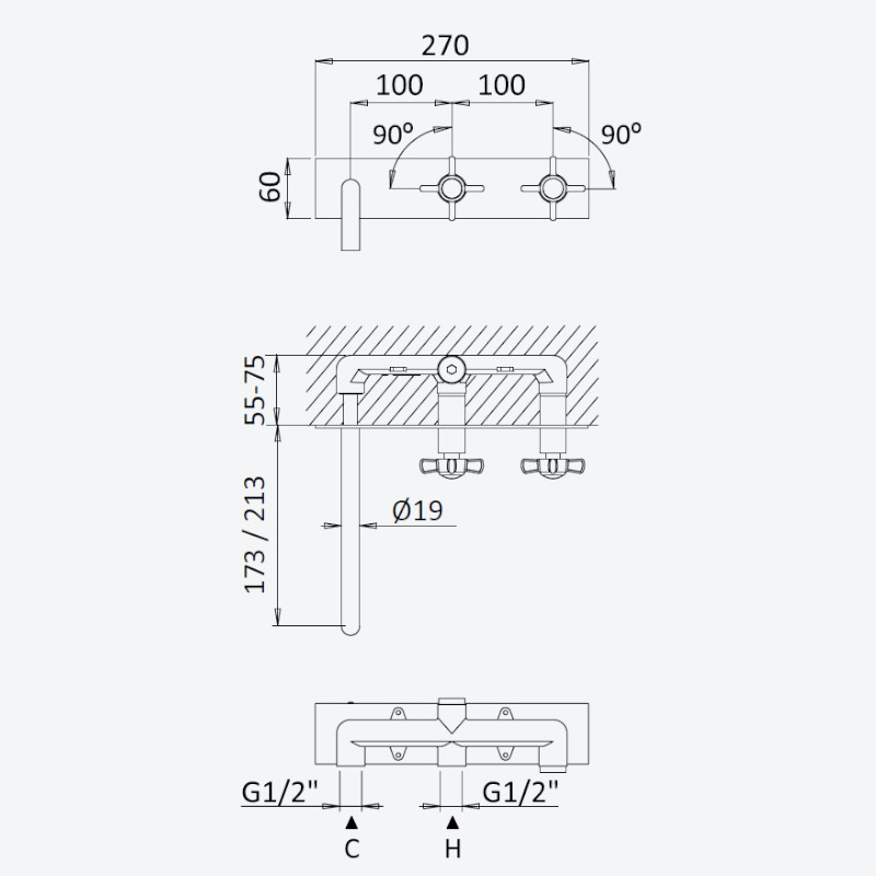 Bruma Imperial Bateria umywalkowa 210 mm podtynkowa Chrom 1170104CR