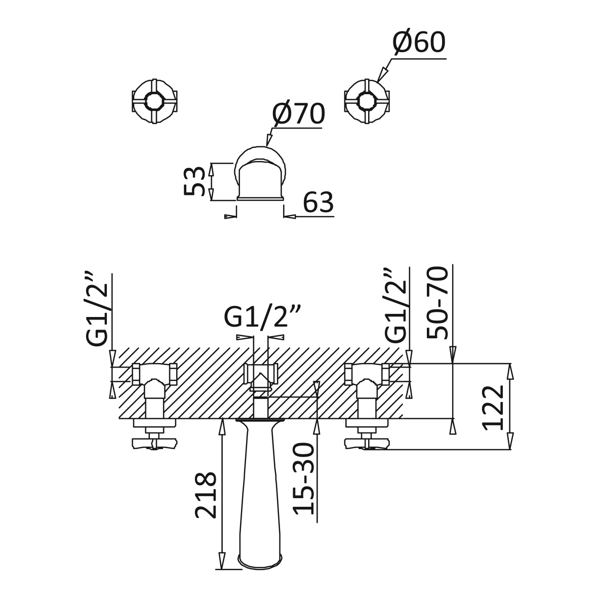 Średnica rozety zaworów: 60 mm