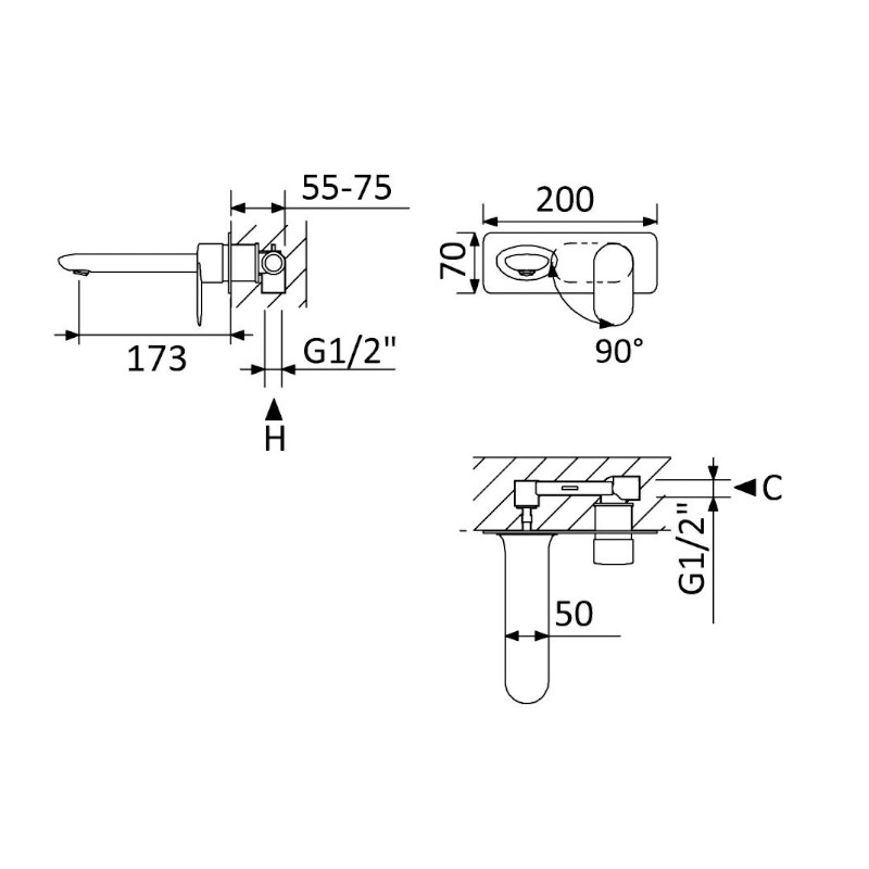Wysięg wylewki: 173 mm
