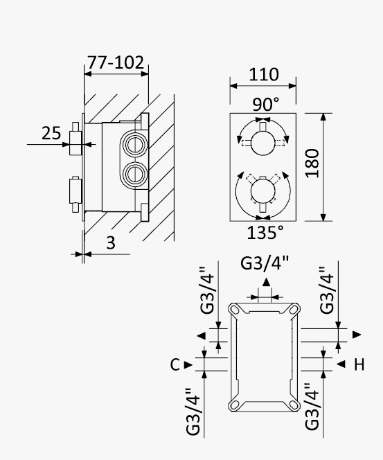 Głębokość montażu: 77 - 102 mm