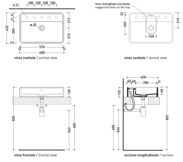 Flaminia Miniwash Umywalka stawiana na blat 60x42 cm Biały MW60PR
