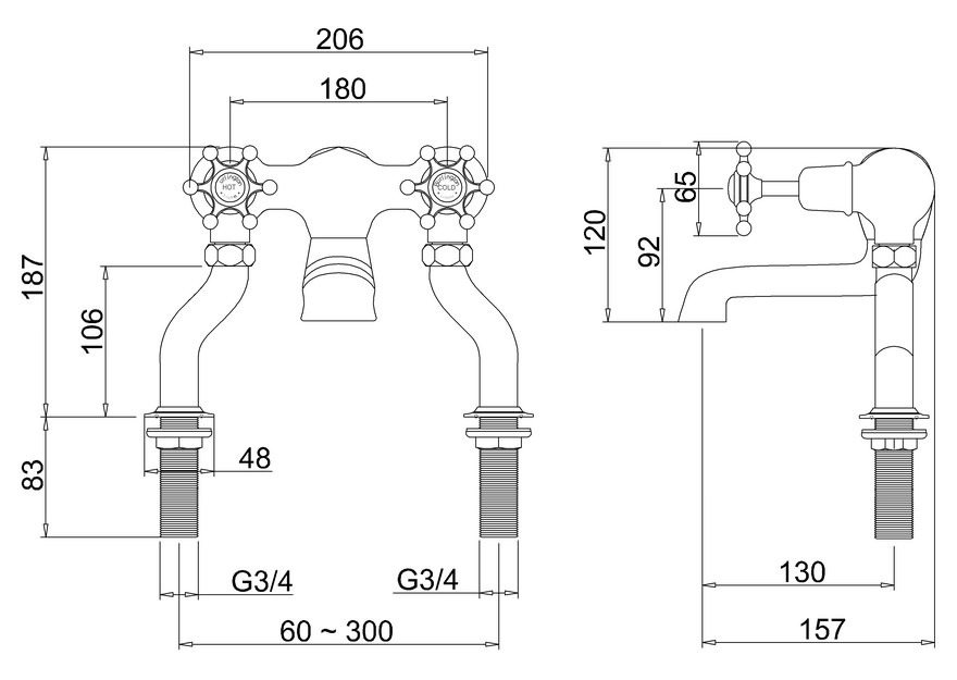 Burlington Bateria wannowa z głowicą ceramiczną chrom T10-QT