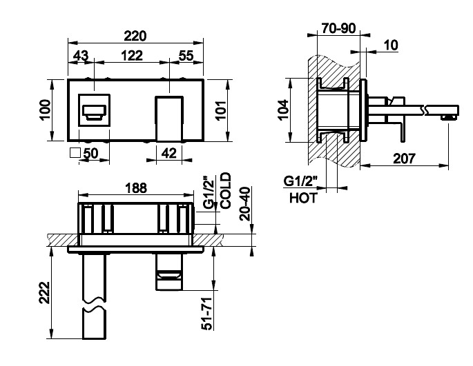 Gessi Rettangolo Bateria umywalkowa ścienna element zewnętrzny chrom 44836.031