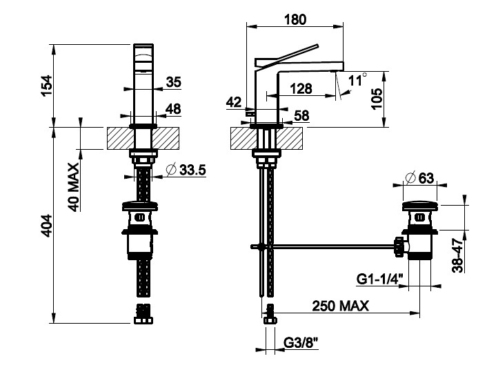 Gessi Rettangolo K Bateria umywalkowa jednootworowa z korkiem chrom 53001.031