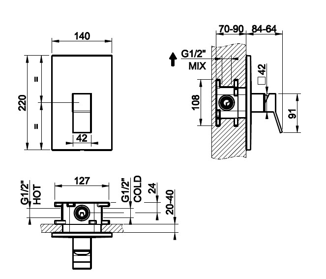 Gessi Rettangolo K Mieszacz ścienny element zewnętrzny chrom 53061.031