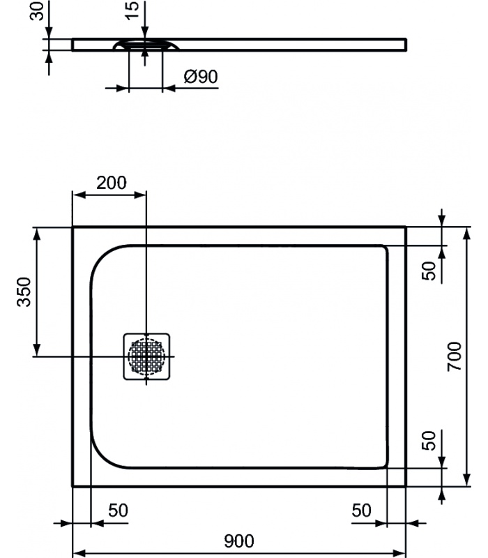 Brodzik wykonany z materiału IDEAL SOLID,