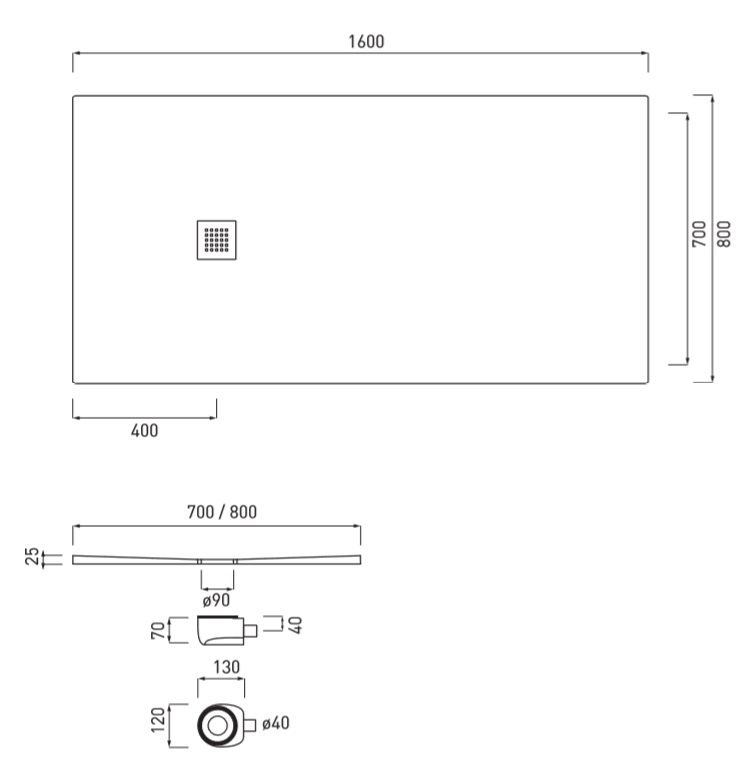 Cielo Venticinque Brodzik prostokątny 70x160cm Biały PDR16070