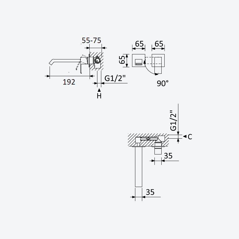 Głębokość montażu: 55 - 75 mm