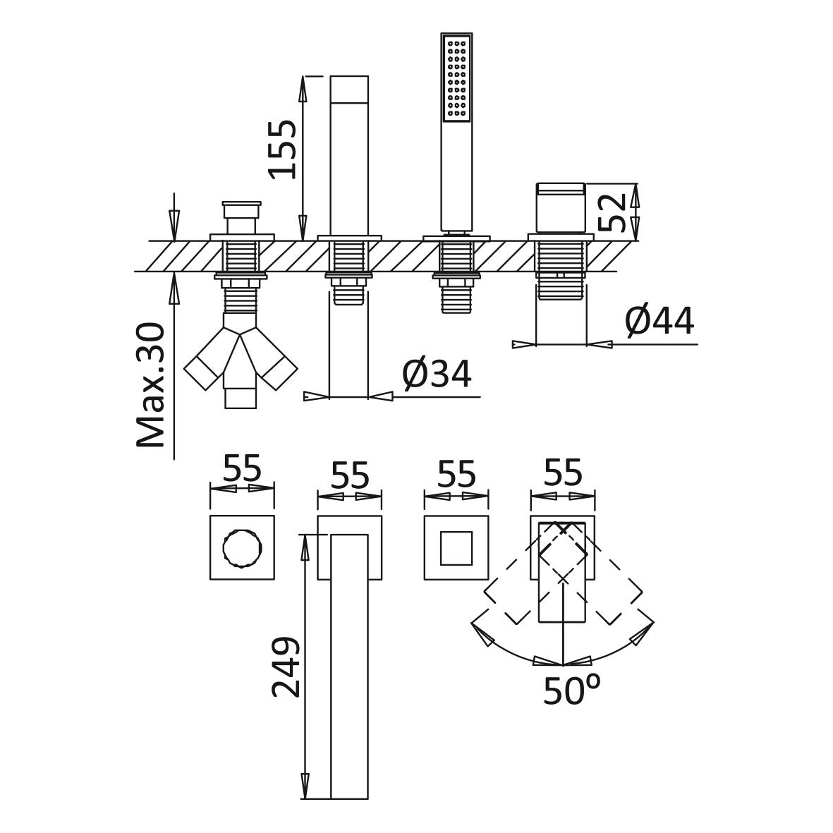 Bruma Linea Bateria wannowo-natryskowa Na Brzeg Wanny chrom 1823301CR
