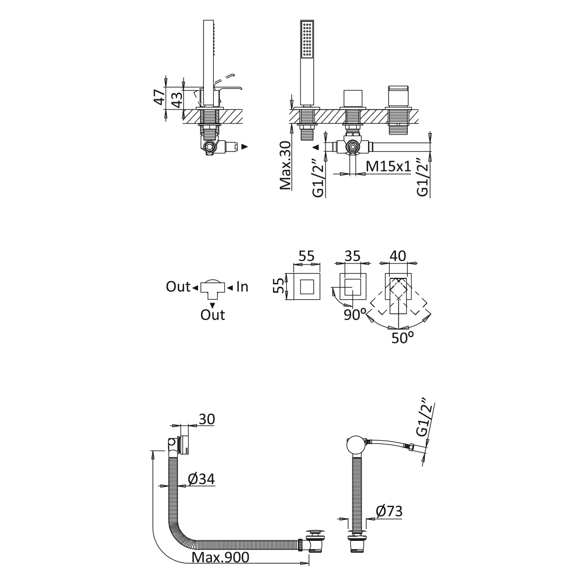 Bruma Linea Bateria wannowo-natryskowa Na Brzeg Wanny Chrom 1825211CR