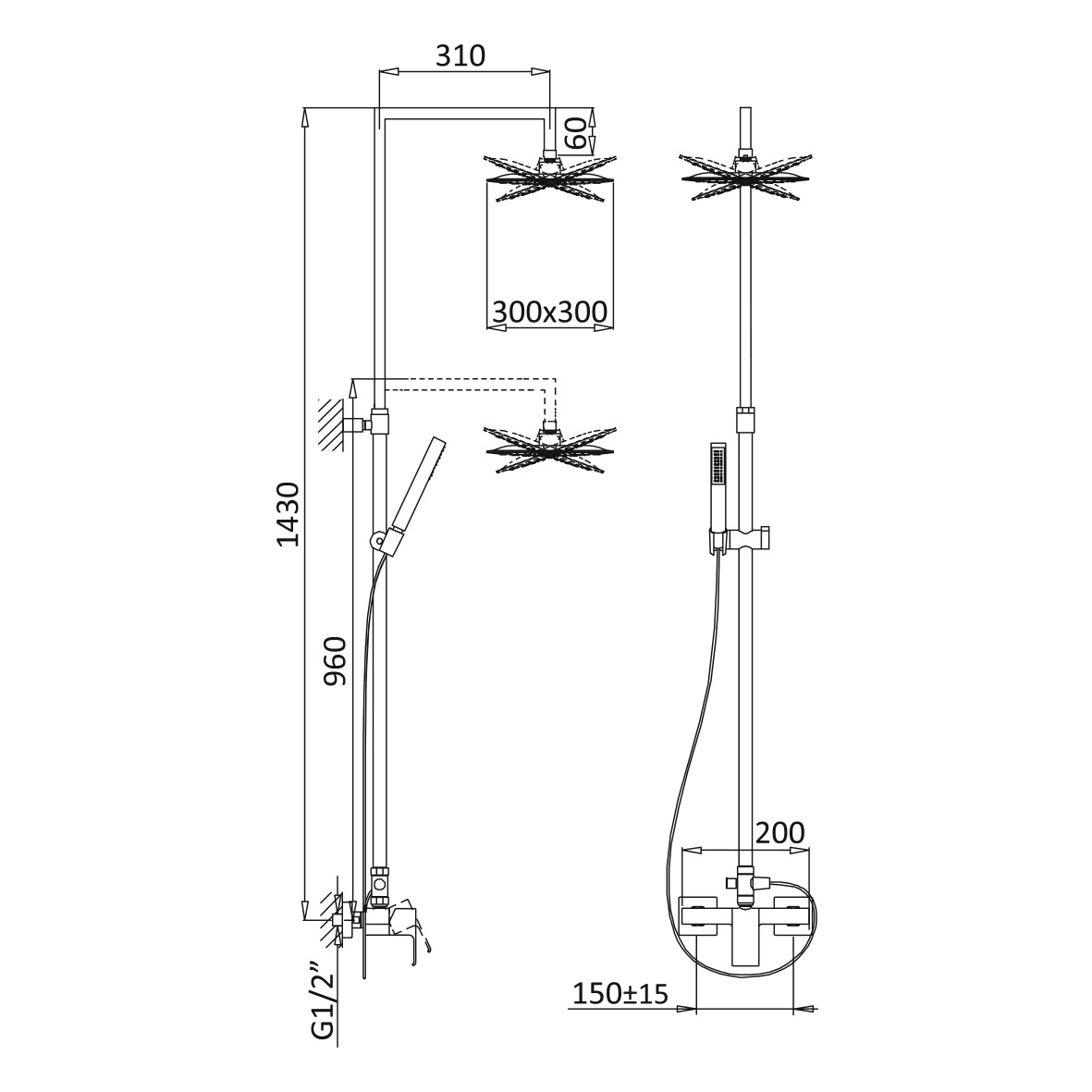 Bruma Linea Zestaw natryskowy 300 mm z regulowaną wysokością prysznica chrom 1822713CR