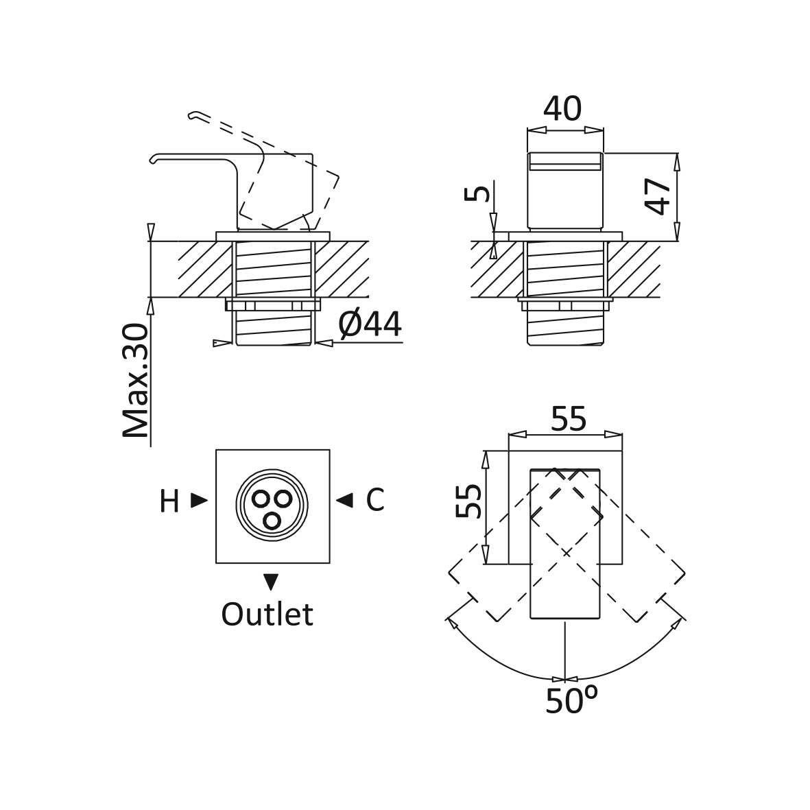 Szerokosć rozety: 55 mm