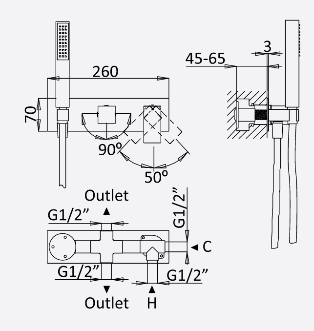 Bruma Linea Bateria wannowo-natryskowa Podtynkowa Chrom 1822001CR