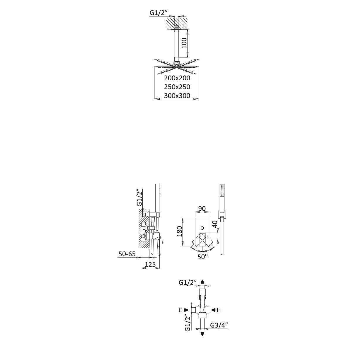Bruma Linea Zestaw natryskowy 200 mm Podtynkowy z ramieniem sufitowym chrom 1825641CR