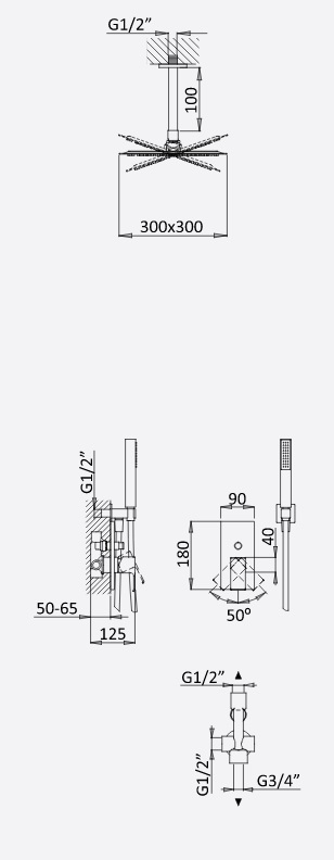Bruma Linea Zestaw natryskowy 300 mm Podtynkowy z ramieniem sufitowym Chrom 1825661CR